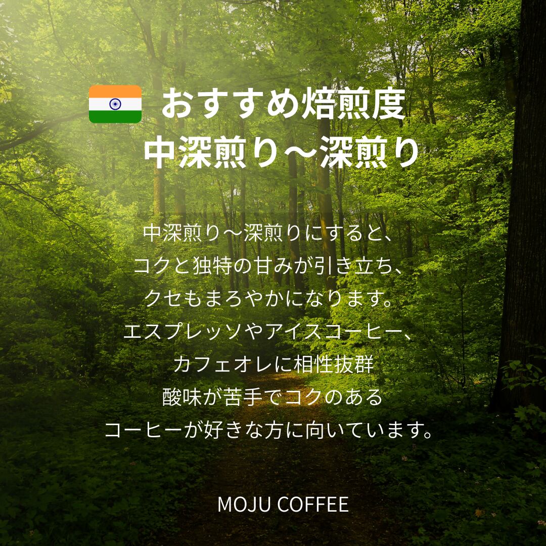 酸味ほぼゼロ・極めてコク深い・独特のスパイシー感が特徴の、クセになる豆です。