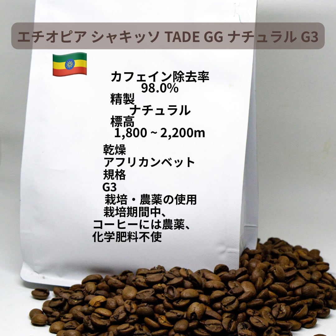 世界有数のコーヒー産地エチオピアで、オーガニック栽培された豆を、自然の製法でやさしくカフェインを除去。