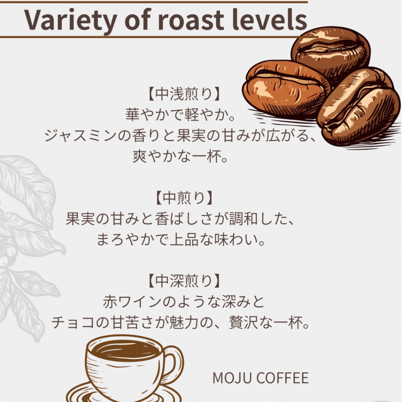 お好みの焙煎をご指定ください。