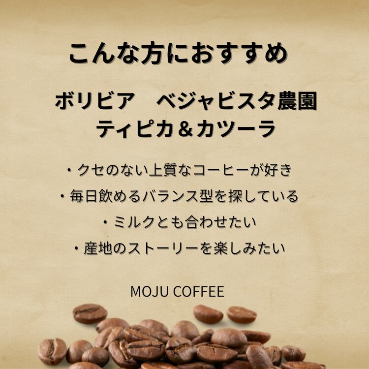自家焙煎珈琲豆 MOJUCOFFEE ボリビア ベジャビスタ農園 ティピカ&カツーラ/100g