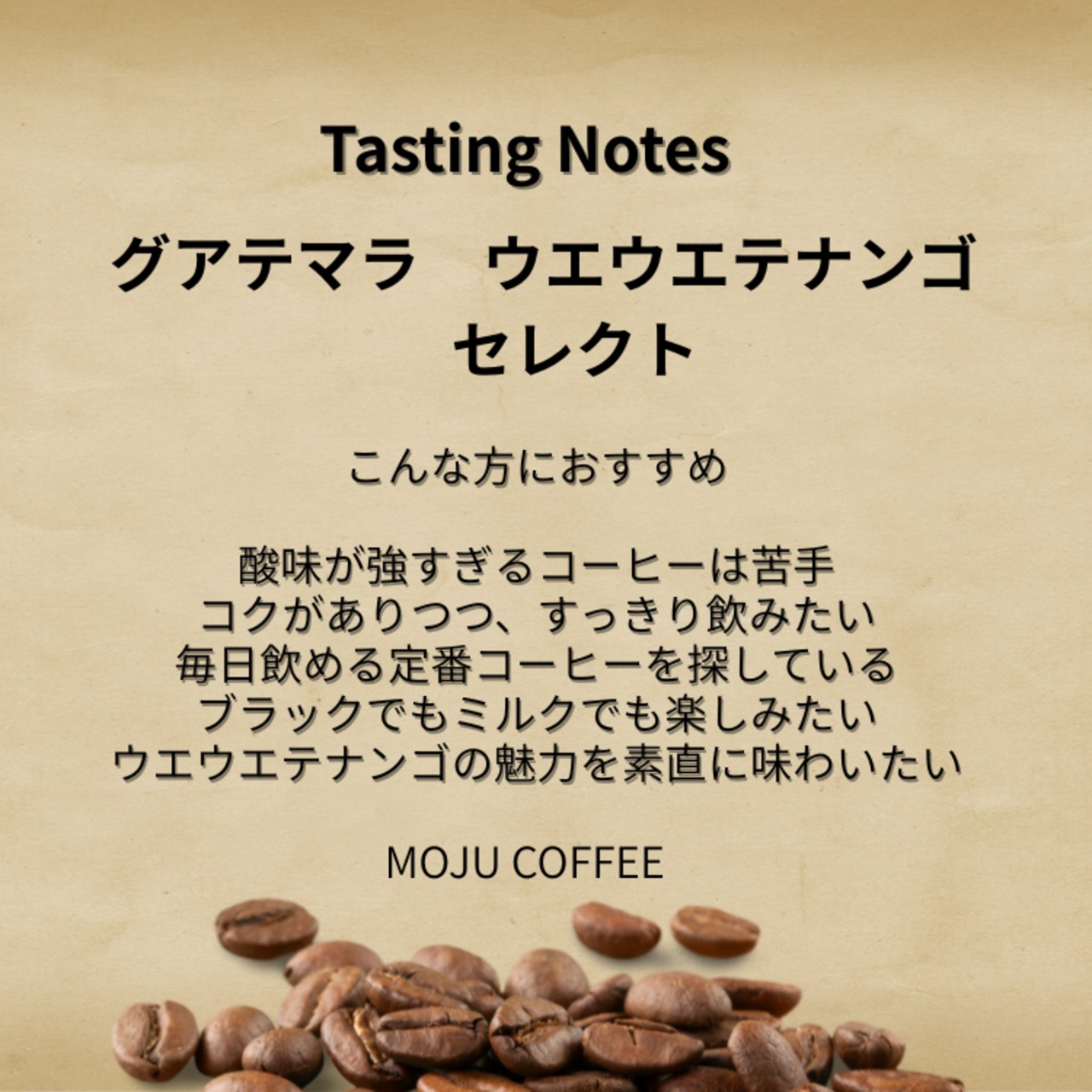 自家焙煎珈琲豆 MOJUCOFFEE グアテマラ ウエウエテナンゴ セレクト/100g